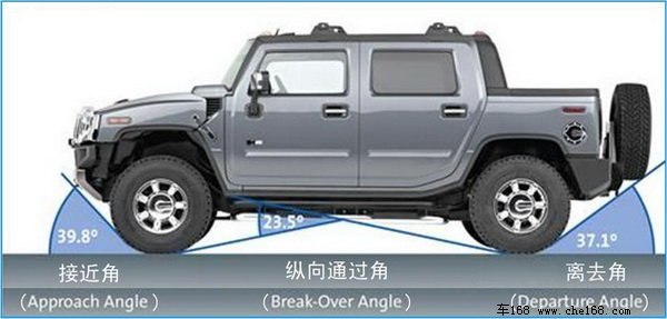 接近角越大,越不易发生因车辆前端触及地面而不能通过的情况。反之,接近角越小,越容易发生因车辆前端触及地面而不能通过的情况。