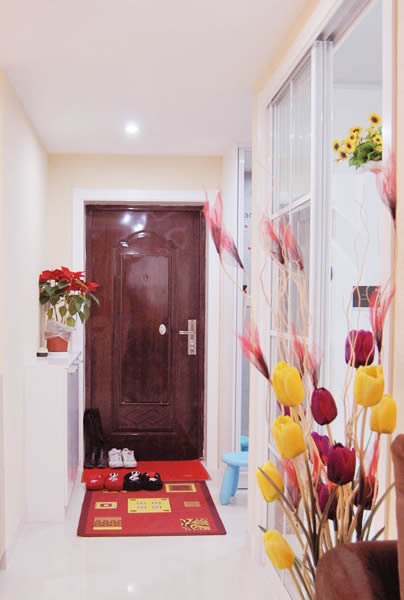 玄关的墙壁有很多收纳的文章可做,上方的墙壁最佳选择当然是挂照片了,走进家门看到亲人的笑脸是件很幸福的事情,下部可以放置搁板收纳物品,注意选择圆角的搁板以防碰伤,搁板上可以随意放置一些小物件。