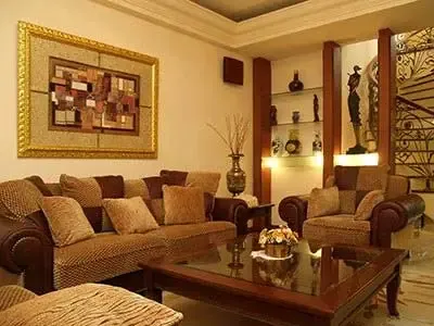 另外,若客厅留有暖气位置,可依墙设计一排展示柜,即可充分利用死角,保持统一的基调,还为展示个人文化品位打开了一个窗口。同时要注意,在地面处理上,要尽量使用浅色材料,避免深色吃光,也能增进客厅内的光亮度。 |